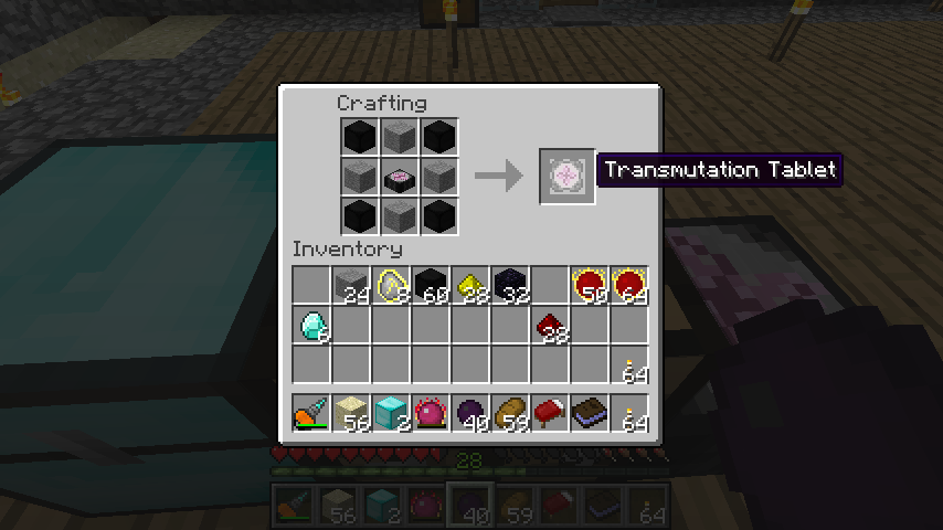 さらに錬成板、焼石*4、ダークマターブロック*4でポータブル錬成版(Transmutation Tablet)。