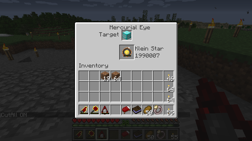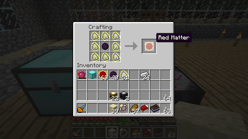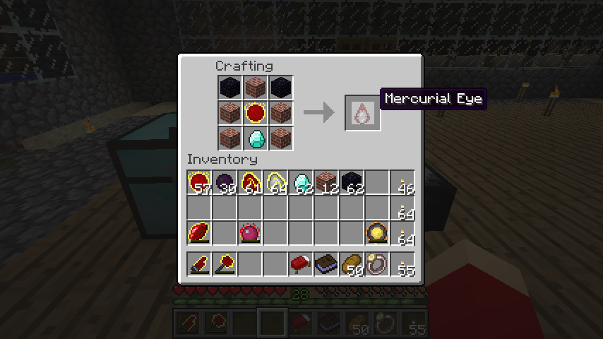 レッドマター、ダイヤモンド、黒曜石*2、レンガ*5でメルクリウスの目(Mercurial Eye)。