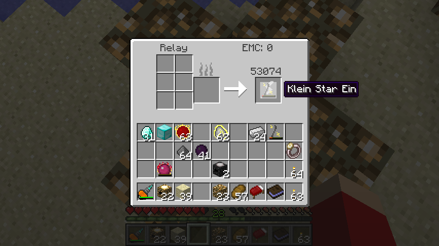 その後左に素材アイテムを置くと、素材を消費してEMCに変換し、そのEMCを利用して錬成が行えるようです。
