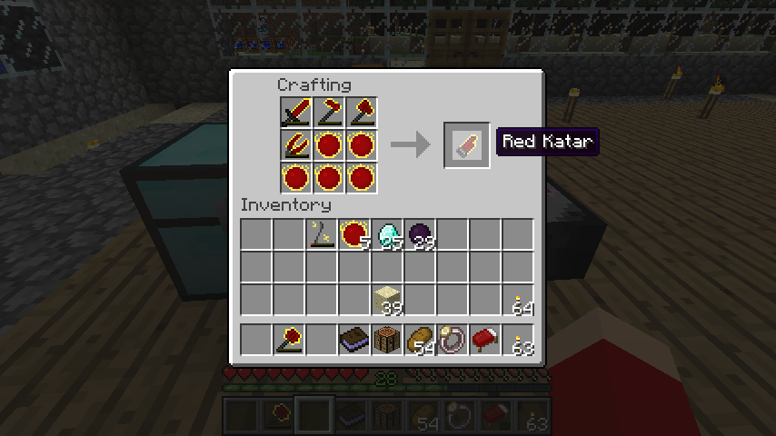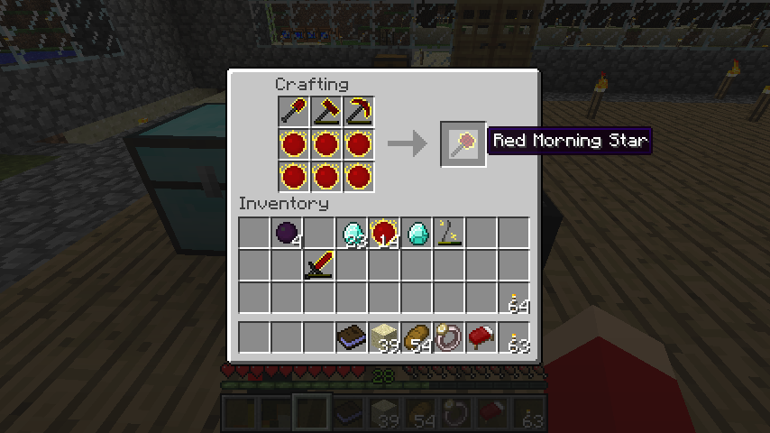レッドマターシャベル、レッドマターつるはし、レッドマターハンマー、レッドマター*6でレッドモーニングスター(Red Morning Star)。