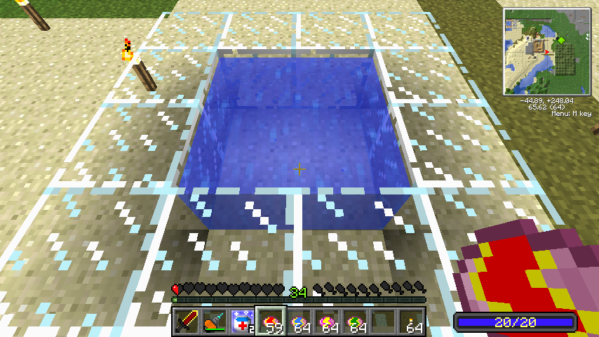 レベル1で1*1、レベル2で2*2の無限水源を作成します。