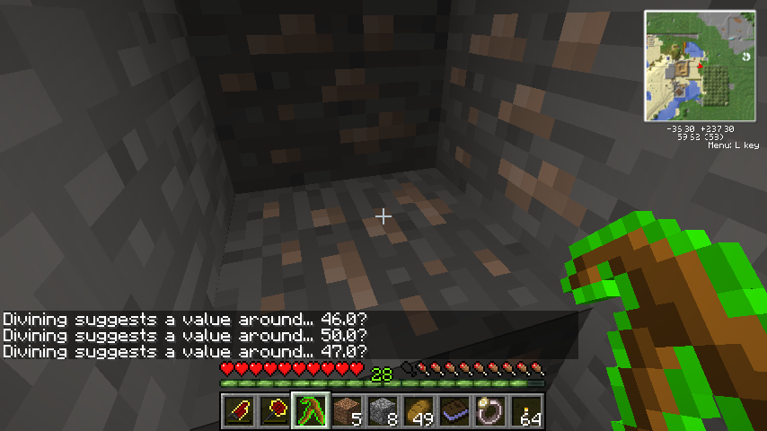 周囲にある鉱石などのEMCを数値化して教えてくれるはずなのですが、どうも数値が安定してなくてそこまでは信用できないかんじです。