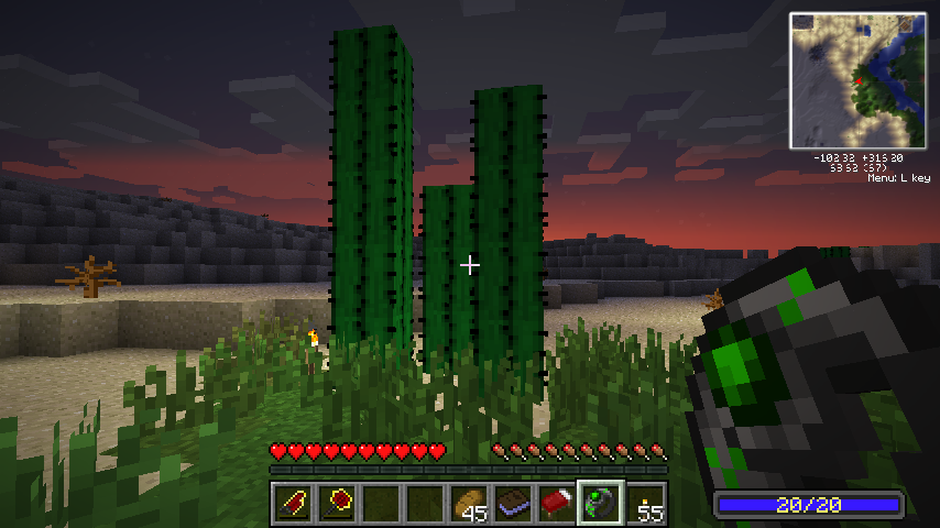 持ってるだけで勝手に周囲に植物がどんどん生い茂り、サボテンやサトウキビは5マスまで成長するようになります。
