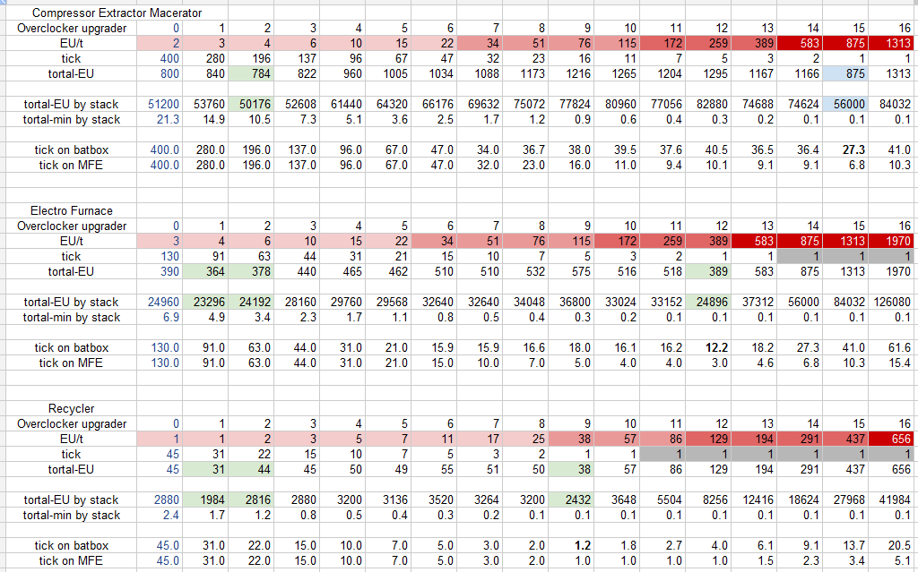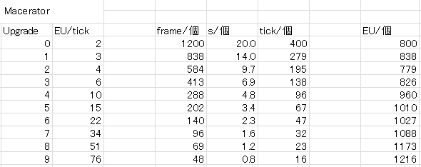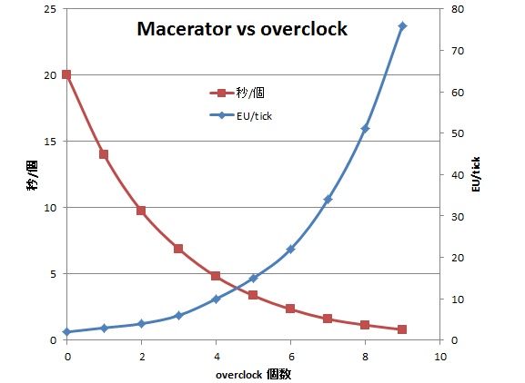| オーバークロッカー | EU/tick | tick/個 | EU/個 |