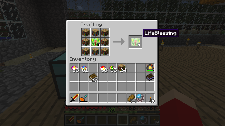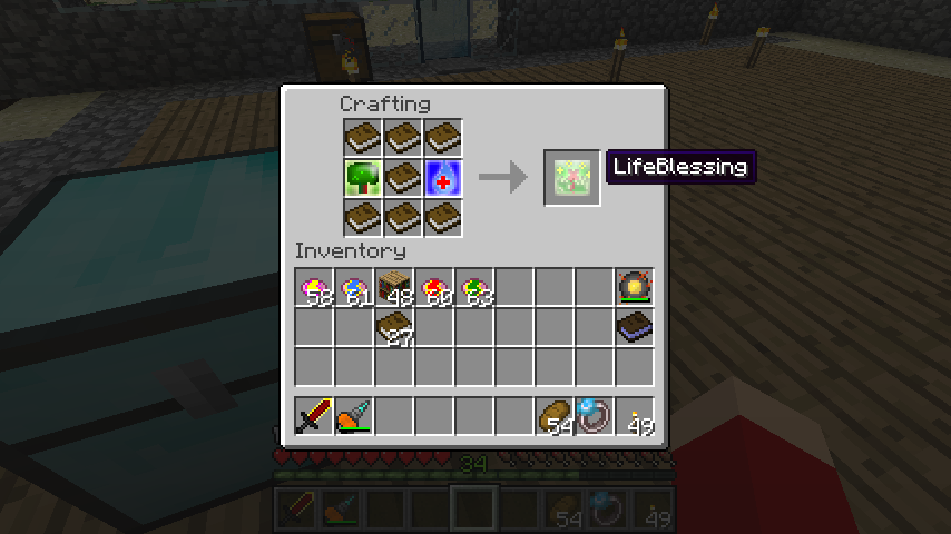 ライフブレッシング(LifeBlessing)のレシピはナチュラルバリアLv1、アクアヒールLv1、本*7です。