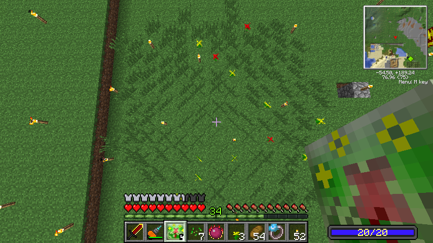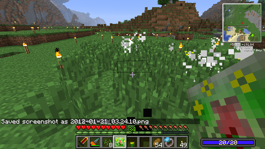 効果は使用したブロックの周辺の草ブロックに植物が生えます。