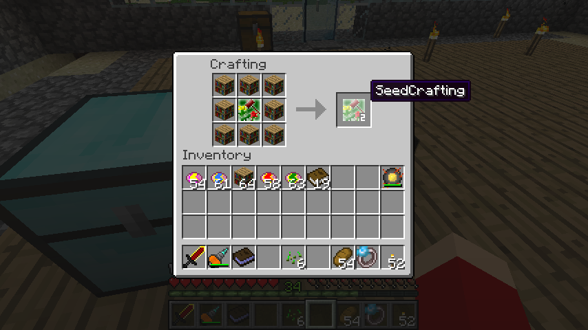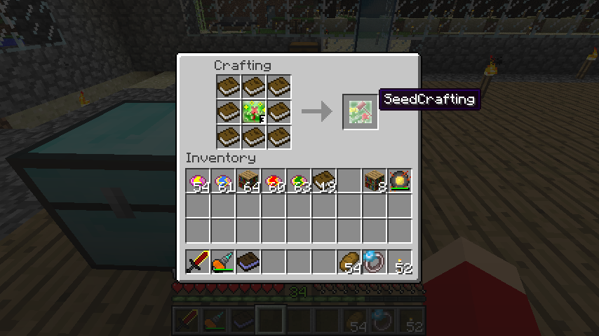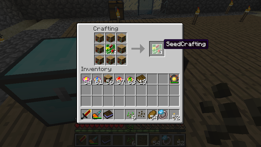 シードクラフティングと本棚*8でシードクラフティングLv2(SeedCrafting)、シードクラフティングLv2と本棚*8でシードクラフティングLv3(SeedCrafting)にパワーアップします。