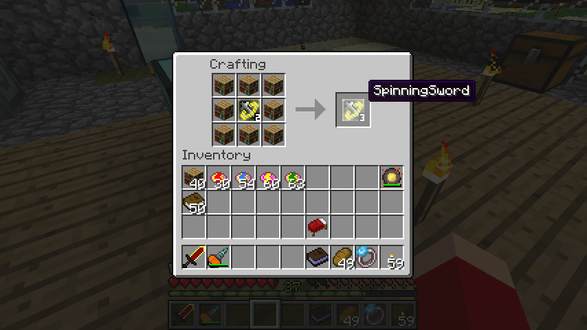 スピニングソードLv3(SpinningSword)はスピニングソードLv2、本棚*8。