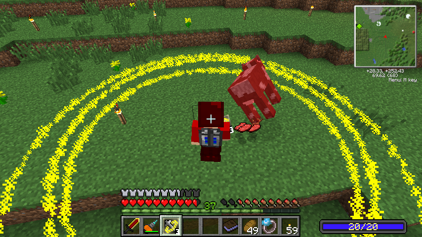 自分の周囲360度に魔法の剣を振り回し、近くのモブにダメージを与えます。