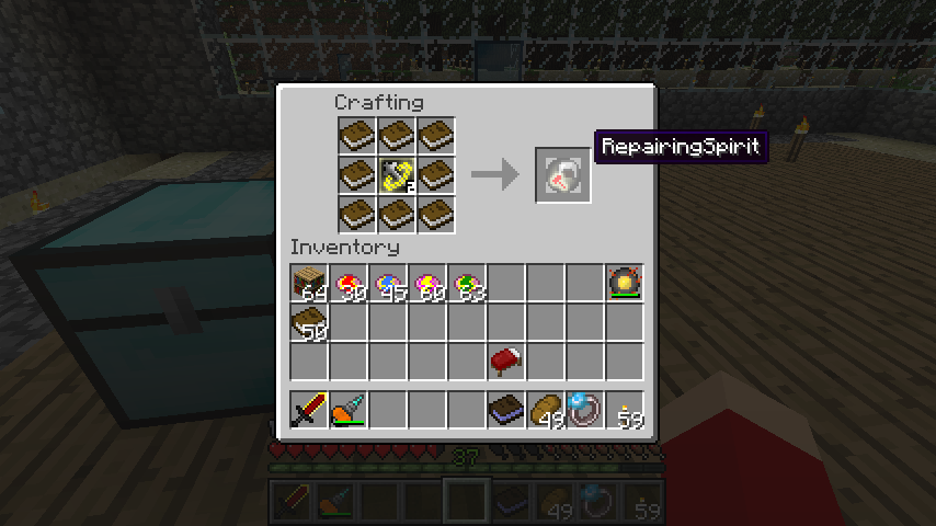 リペアリングスピリット剣(RepairingSpirit)はリペアリングスピリット鎧Lv1と本*8。