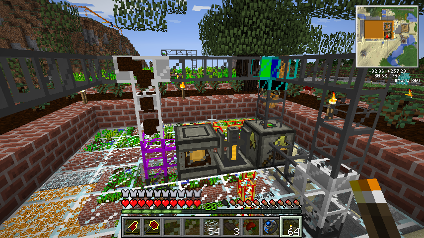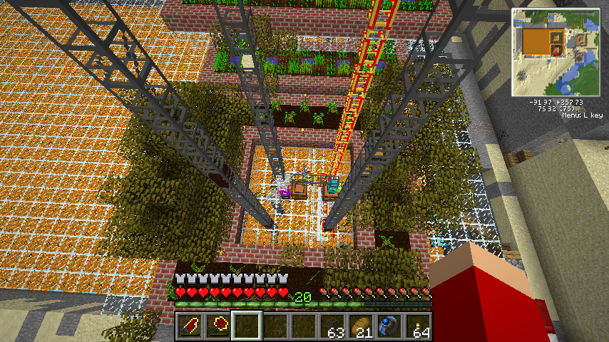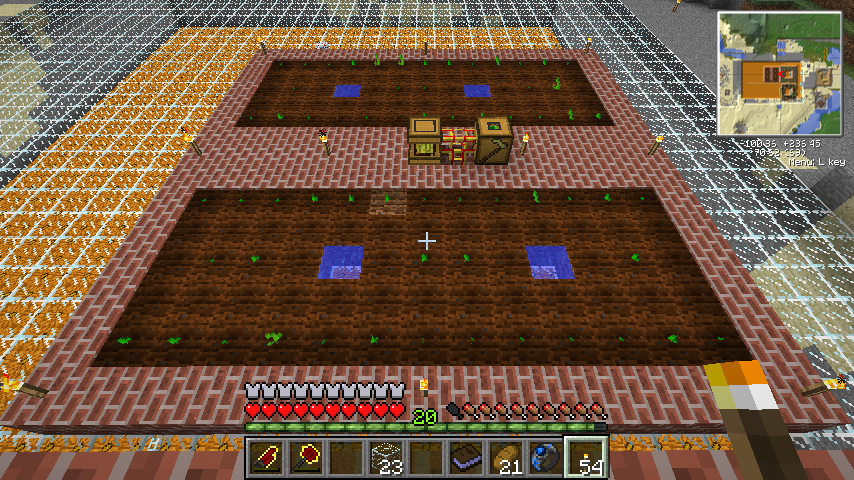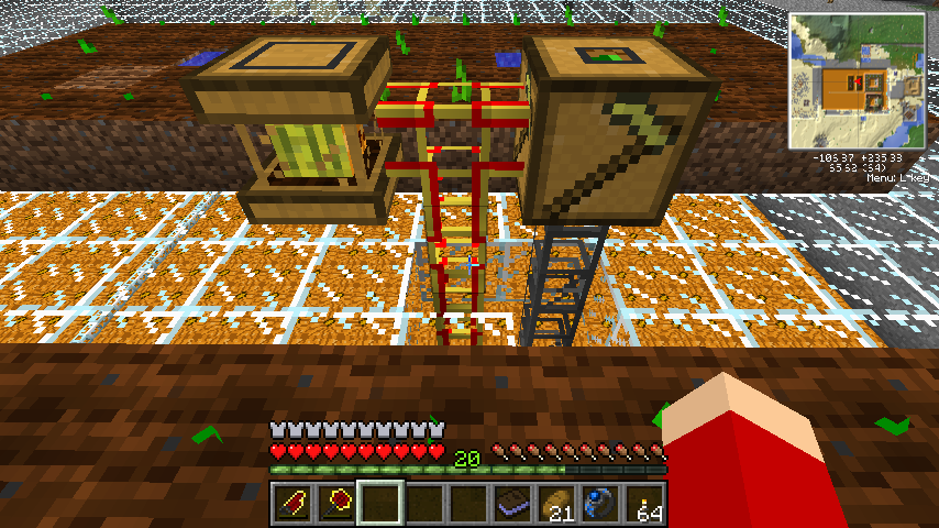 注意点としては、南瓜/西瓜農業マシンは周囲を一マス掘り下げて土を配置するので、他のマシンより一段高く設置する必要があります。