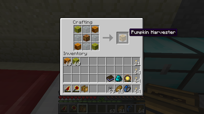 南瓜/西瓜収穫マシン(Pumpkin Harvester)は小麦農業マシン、ガラス*4、かぼちゃ*2、すいか*2。