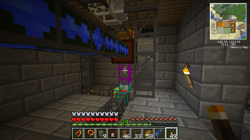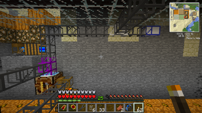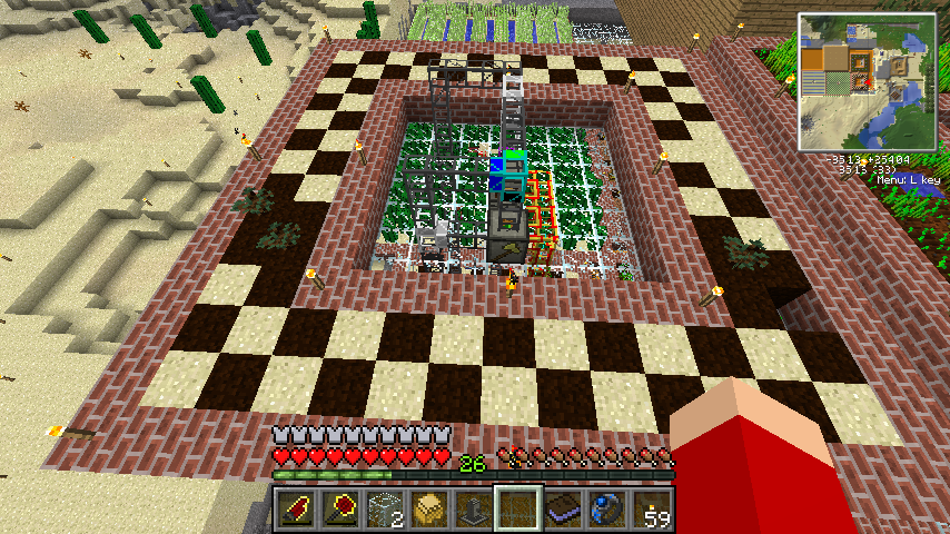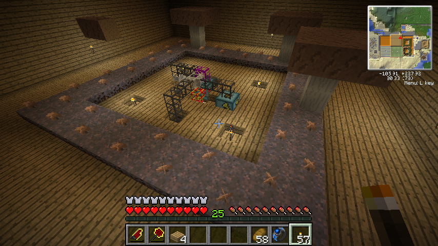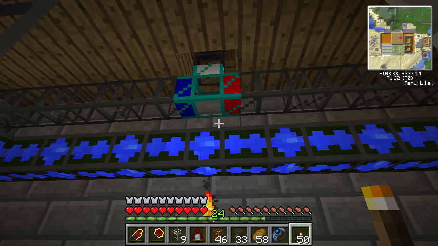 なお撮影用にトーチを置いていますが、実際は暗闇になるため、床には半ブロックを敷いています。