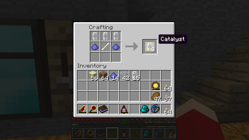 レシピが全部で9種類もあるのですが、そのうち7種類は蜂の生産物が必要、1種類はバージョン1.3.2.1では作成不能なアイテムが混ざっており、現状で使用可能なレシピは1種類です。
