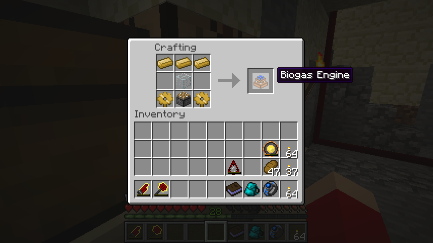 バイオガスエンジンを動かすには燃料と溶岩という複数の原料が必要となります。