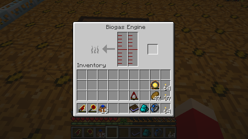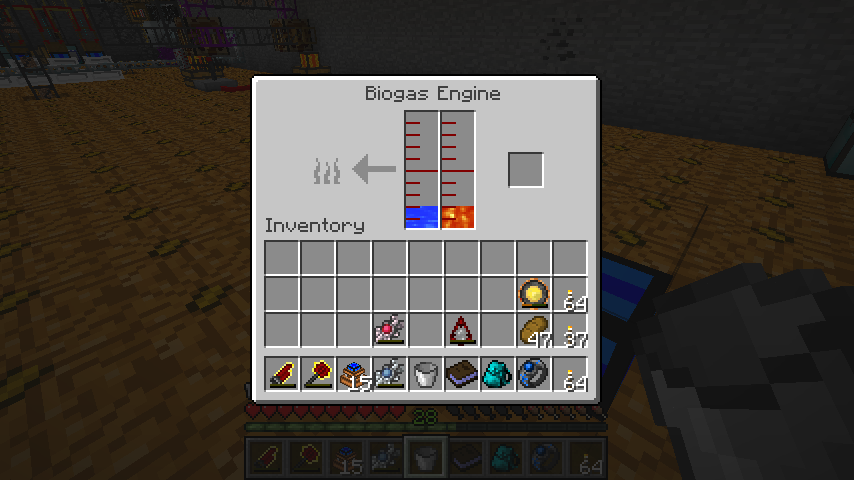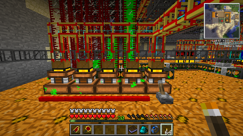 牛乳を自動的に搾る手段が無く、BuildCraftのパイプも牛乳に対応していないため、燃料の供給は手動バケツリレーに頼るしかありません。