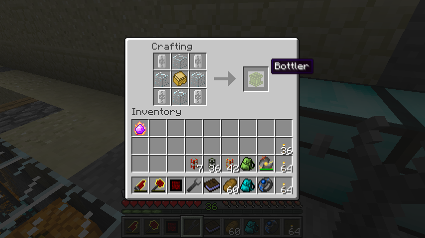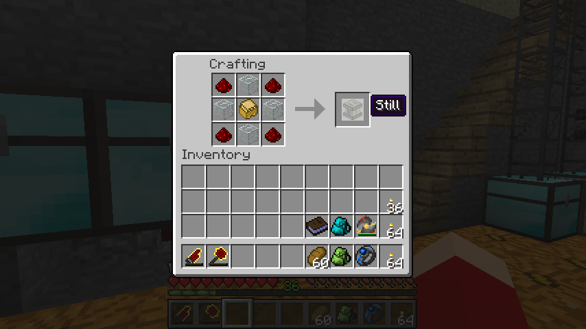 バイオマス蒸留器(Still)は頑丈なマシン、ガラス*4、レッドストーン*4。