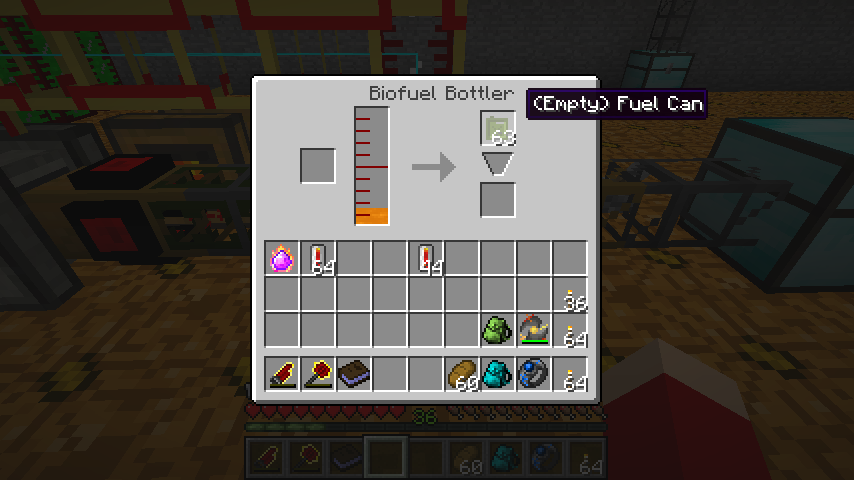 バイオマス蒸留器と同じように、バイオエタノールとエネルギーを注ぎ込むと、IC2の燃料缶にバイオエタノールを詰め込み、燃料缶を作ってくれます。