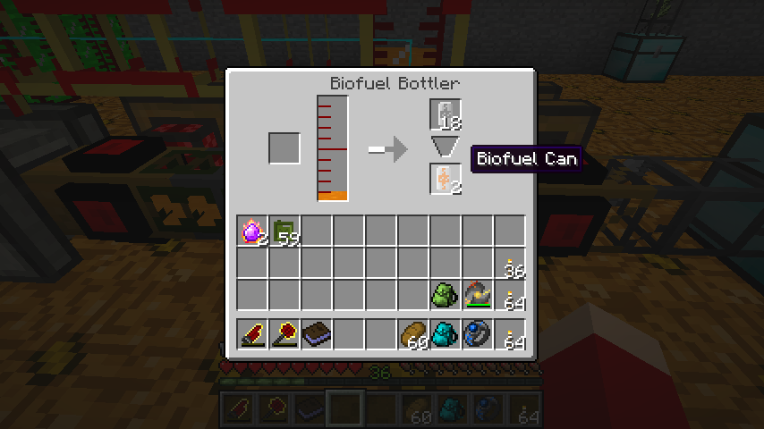 バイオエタノールはバイオ燃料の2倍の効率を持ちますが、かわりにバイオガスエンジンで動かなくなり、BuildCraftの鉄エンジンでしか使用できなくなります。