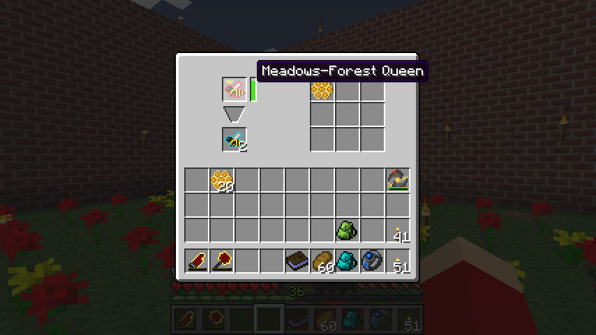 森の女王蜂に草原の雄蜂(Meadows Drone)を交配したところ、森と草原の女王(Meadows-Forest Queen)ができあがりました。