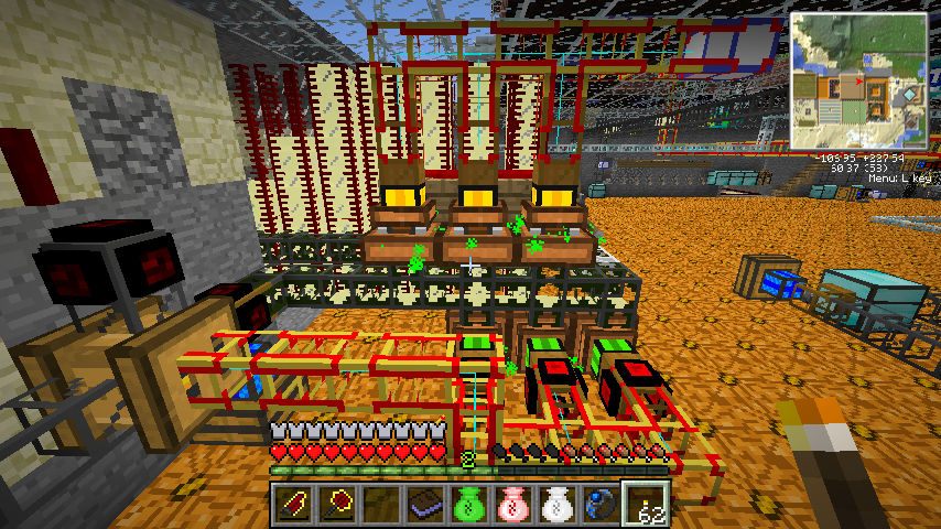 圧縮機の原料が空になるとダミーからレッドストーン出力がなされ、自動作業台から種子を搬出し、圧縮機にふたたび中身を突っ込む動作をしています。
