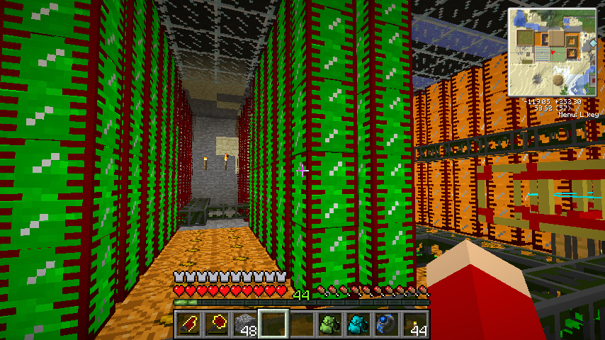 畑の苗を全て南瓜に張り替え、生産された南瓜を左上のチェストに収納します。