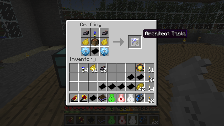 ランドマーカー、作業台、製図、墨*2、黄色の染料*2、ダイヤの歯車*2で製図机(Architect Table)。