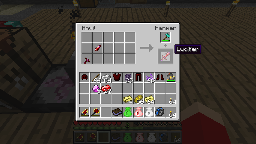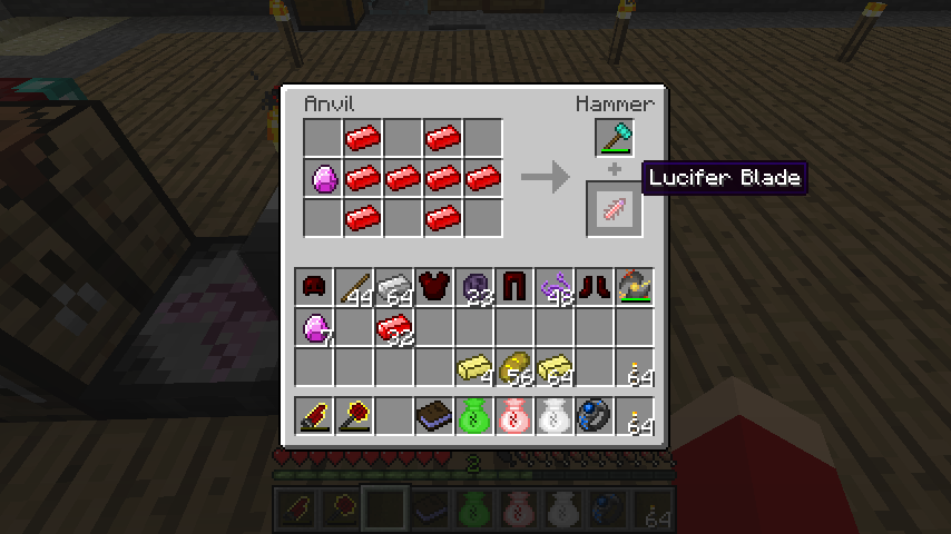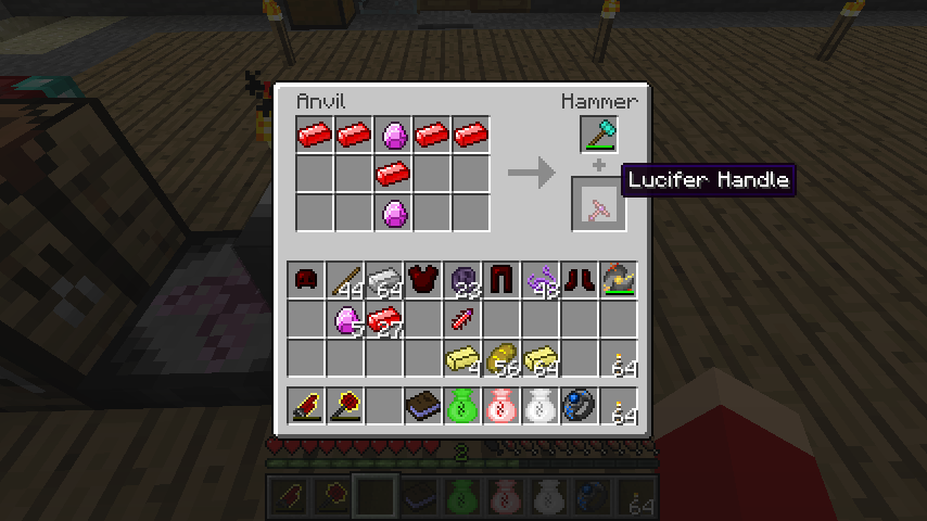 ルシフェライト*2、デモナイトインゴット*5からルシファーの柄(Lucifer Handle)。