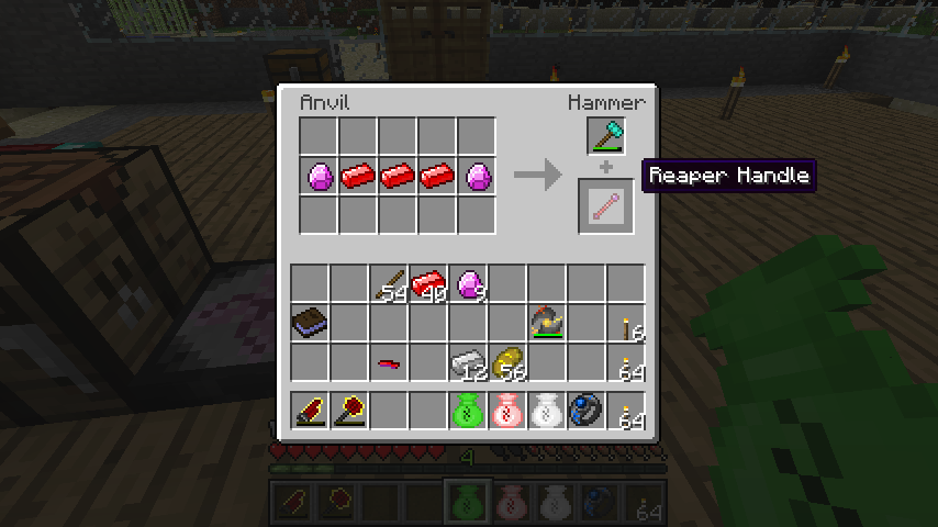 ルシフェライト*2、デモナイトインゴット*3からリーパーの柄(Reaper Handle)。
