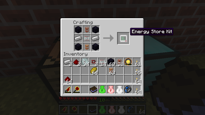 エナジーストアキット(Energy Store Kit)は鉄パワーコア、木エネルギーパイプ、金エネルギーパイプ、鉄インゴット*2、黒曜石*4。