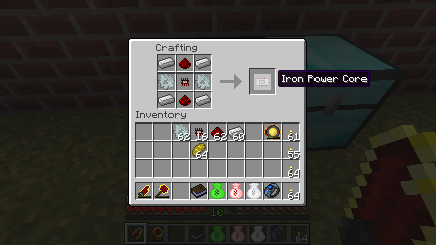 鉄パワーコア(Iron Power Core)は鉄チップセット、レッドストーン*2、鉄の歯車*2、鉄インゴット*4。