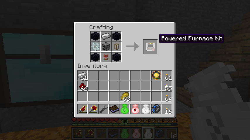 エネルギー炉キット(Powered Furnance Kit)はかまど、鉄インゴット、鉄の歯車、木パイプ、木エネルギーパイプ、黒曜石*4。