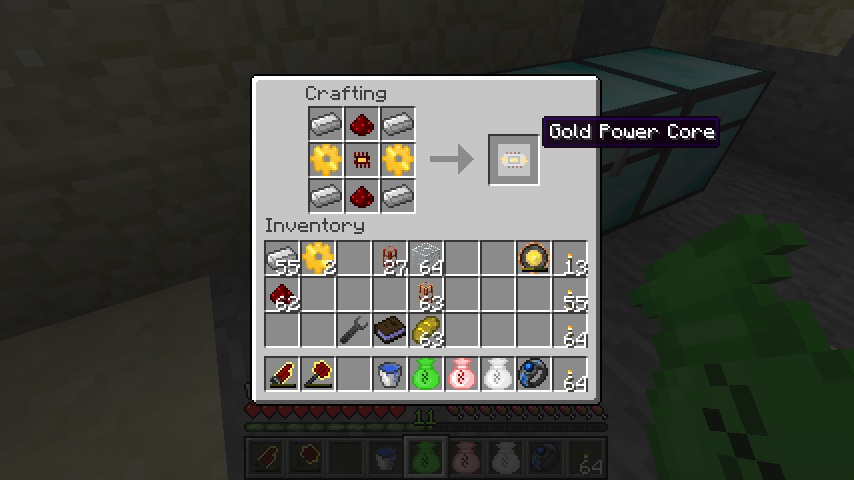 金パワーコア(Gold Power Core)は金チップセット、金の歯車、レッドストーン*2、鉄インゴット*4。
