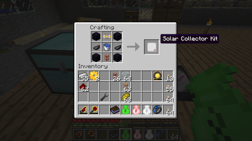 ソーラーコレクタキット(Solar Collector Kit)は金パワーコア、水バケツ、木エネルギーパイプ、墨*2、黒曜石*。