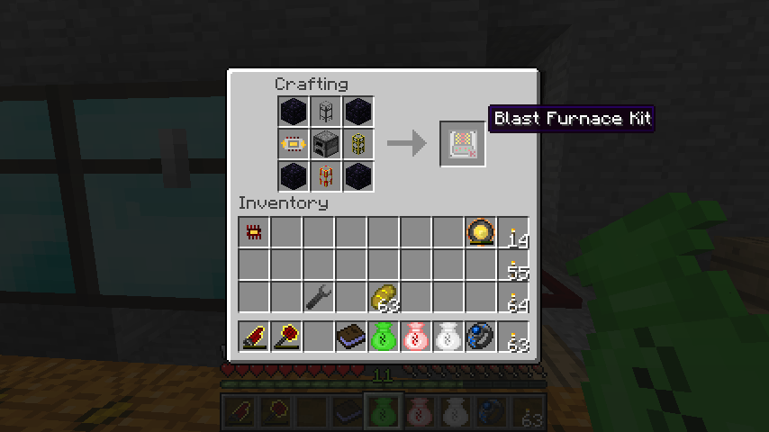 高炉キット(Blast Furnace Kit)は金パワーコア、かまど、石パイプ、金の液体パイプ、金エネルギーパイプ、黒曜石*4。