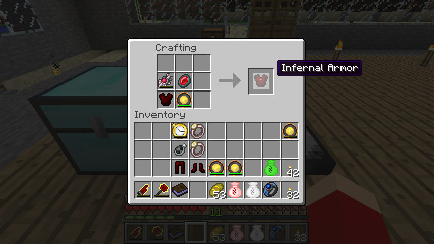 地獄の鎧(Infernal Armor)は灼熱の祭器、肉体の石、レッドマターアーマー、満充電のクラインの星オメガ。