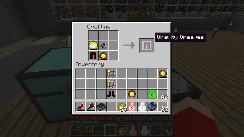 グラビティグリーブ(Gravity Greaves)は時流計、圧縮の宝珠、レッドマターグリーブ、満充電のクラインの星オメガ。
