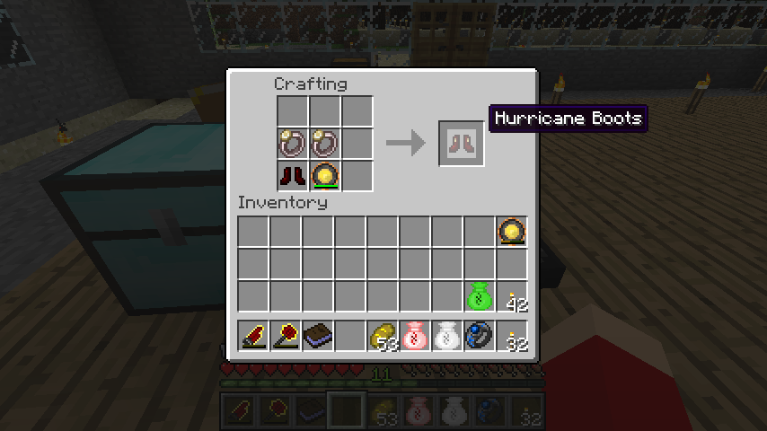 最後にハリケーンブーツ(Hurricane Boots)は風統べる狼王の指輪*2、レッドマターブーツ、満充電のクラインの星オメガ。
