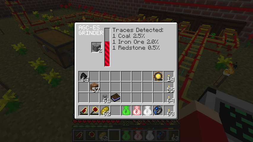 丸石→石炭2.5%、鉄インゴット2.0%、レッドストーン0.5%
