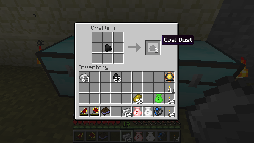 IC2の石炭の粉と見た目は同じですが、あちらは粉砕、こちらはクラフトで別物です。