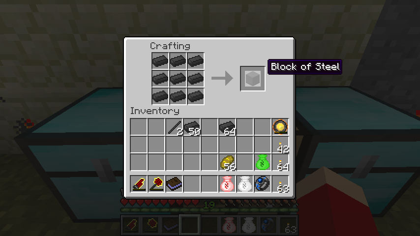 また他のインゴット同様、鋼鉄ブロック(Block of Steel)を作って設置できます。