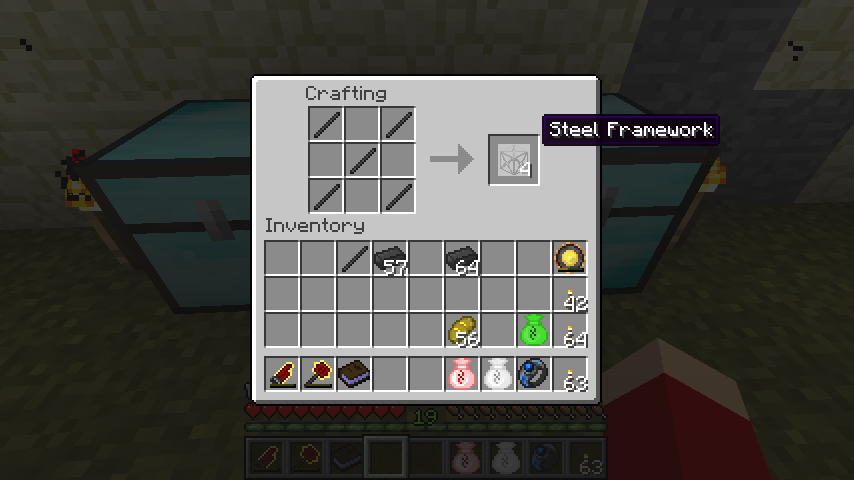 鋼鉄の棒*5で鋼鉄フレーム(Steel Framework)が作成できます。