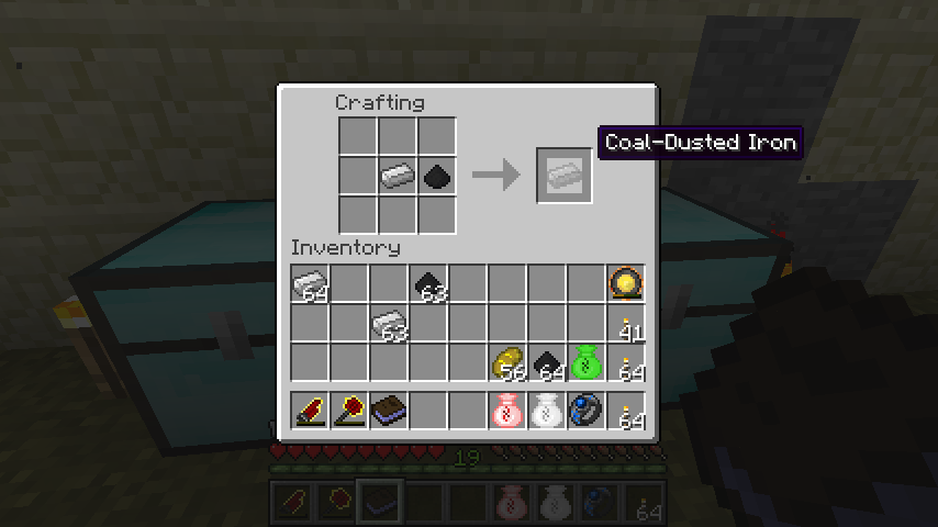 鉄インゴット+石炭の粉で銑鉄(Coal-Dusted Iron)。