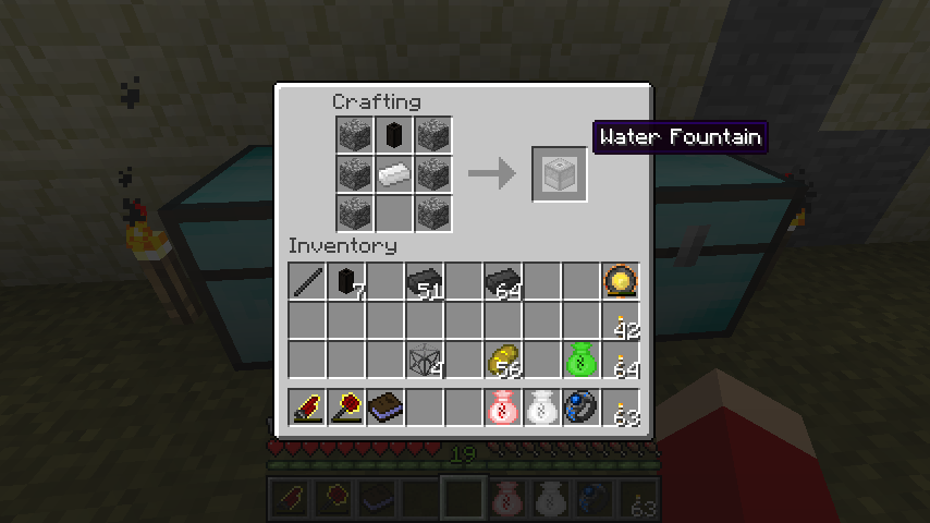 丸石*6、アルミニウムインゴット、鋼鉄パイプで噴水(Water Fountain)。