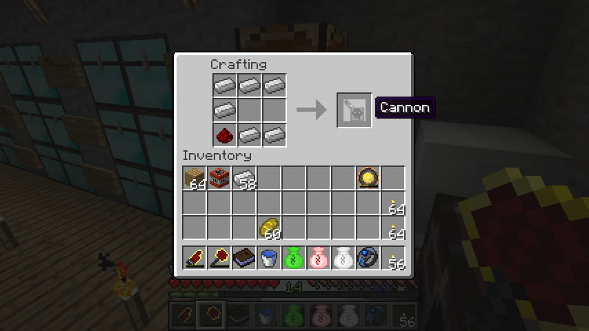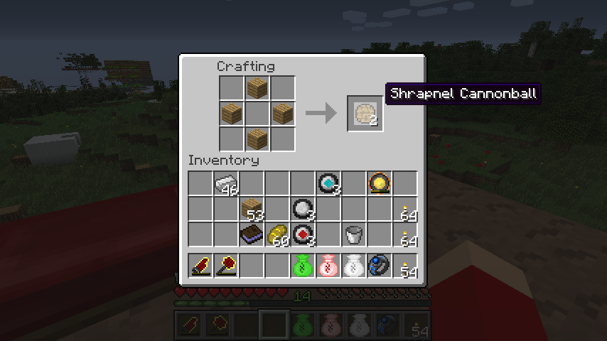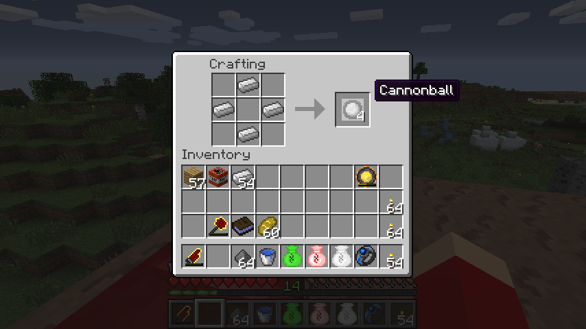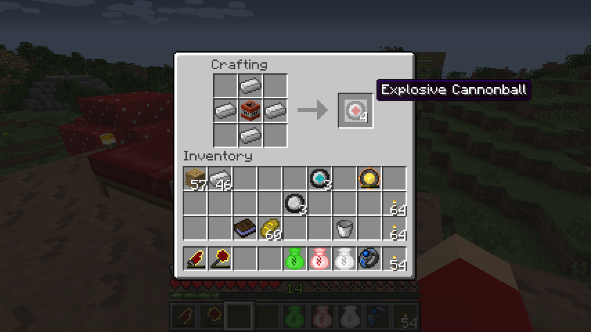 TNT、鉄インゴット*4で爆発砲弾(Explosive Cannonball)。