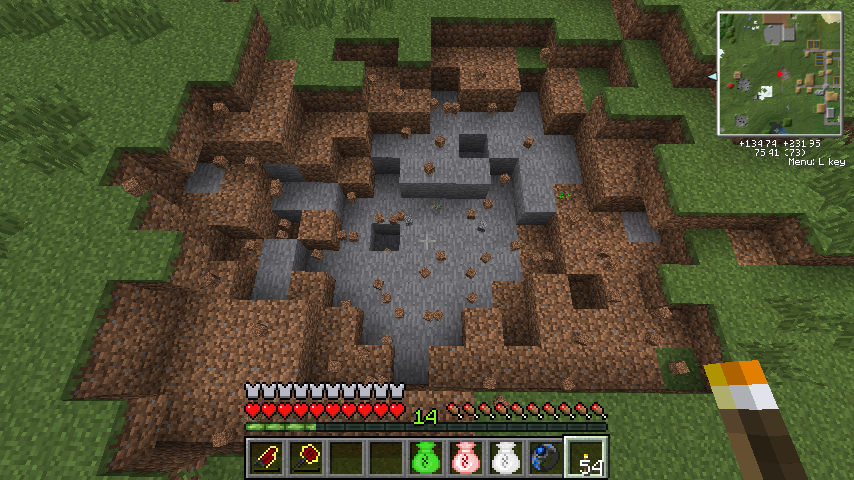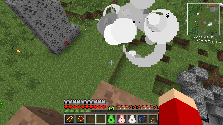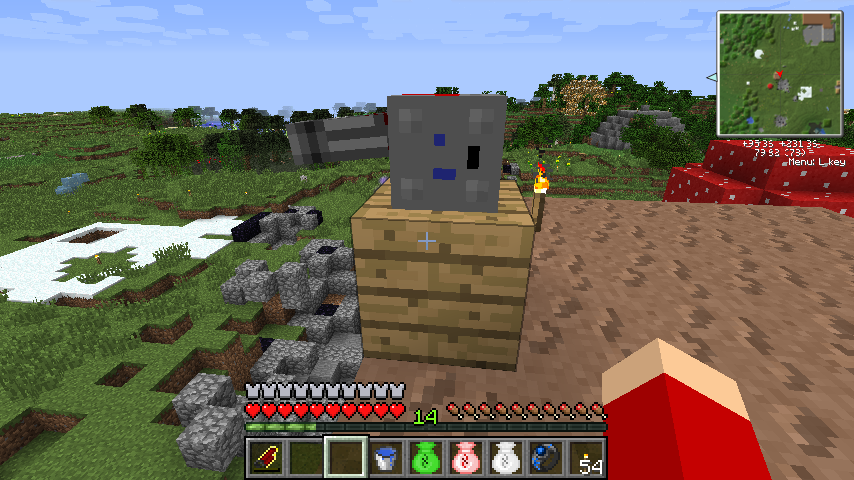 最後にレッドストーン入力すると、砲弾が発射され、着弾点に破壊を撒き散らします。