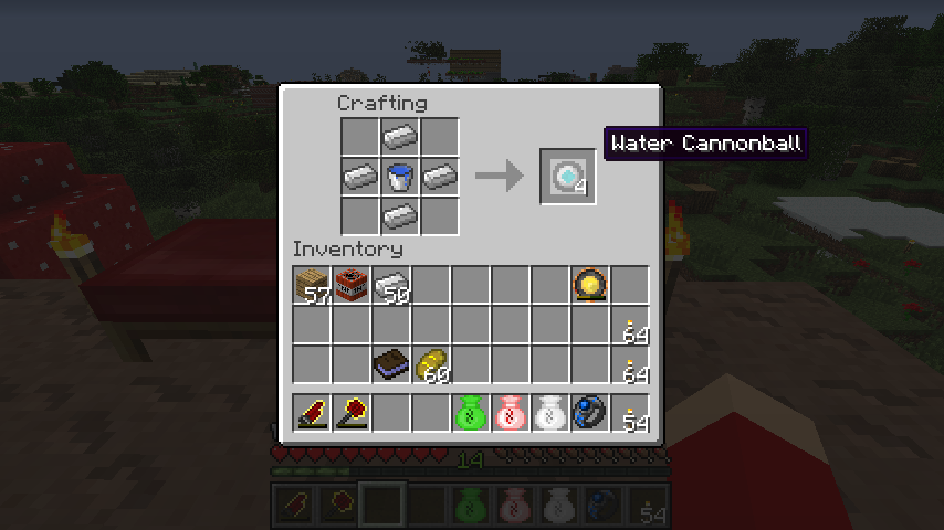 水バケツ、鉄インゴット*4で水砲弾(Water Cannonball)。