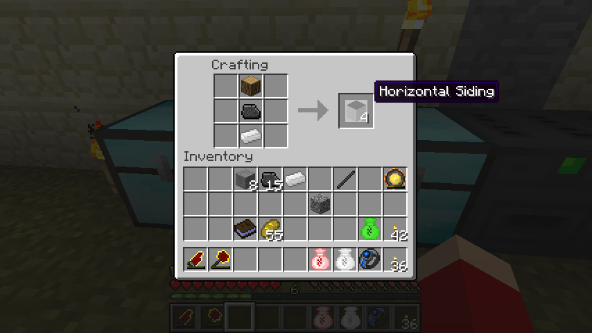 原木、タールボール、アルミニウムインゴットで横縞ブロック(Horizontal Siding)。
