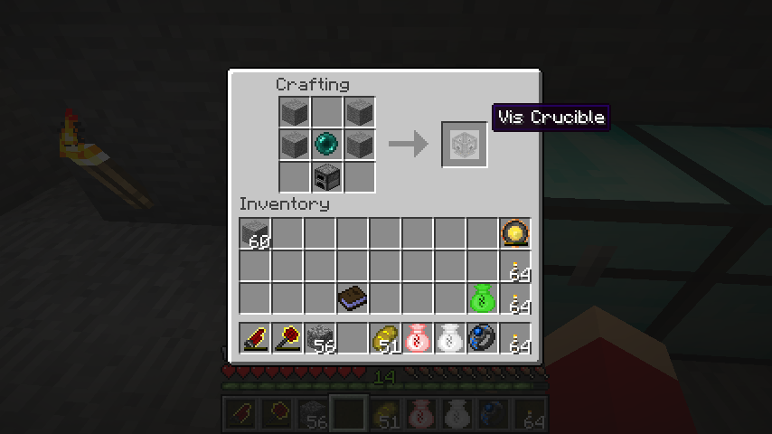 これらを使って、るつぼに投げ込んだアイテムを魔力に変換するのがThaumCraftの第一歩です。