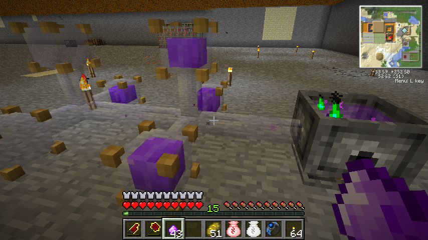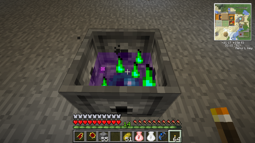 るつぼをそこらへんに設置し、アイテムをQキーで投げ込むと融解して魔力が液体化します。